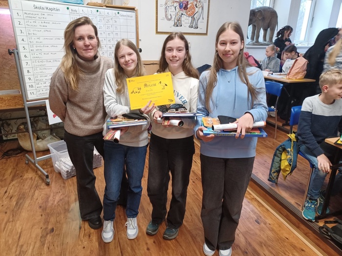 Jarní kolo soutěže Velká cena Zoo s podtitulem Invazní druhy zná své vítěze. První kategorii žáků 6. a 7. tříd ovládly Invazivní nutrie z 2. A. Dívčí tým ve složení Jarmila Hubáčková, Jasmína Hubáčková a Ellen Hlubková zabodoval už v první části soutěže a do finále postupoval z prvního místa. V samotném finále, které proběhlo tuto sobotu 28. 3. 2026, jen potvrdil svou formu a odvezl si celkové vítězství. Kromě cen, které holky dostaly, na ně čekala i cena speciální. Za odměnu se mohly podívat do zázemí pavilonů s gibony a makaky, kam se běžní návštěvníci nedostanou.