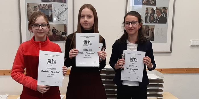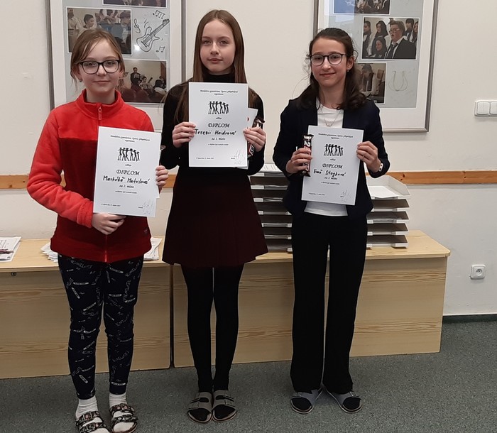 Vybrat si vhodný text, naučit se jej, vypořádat se s trémou, být přirozený, správně vyslovovat a frázovat a ještě k tomu zaujmout porotu a diváky - to nezní jako zrovna lehký úkol. Přesto se ve čtvrtek 13. února s tím vším úspěšně popasovalo 15 recitátorů, kteří přednesli své texty při školním kole recitační soutěže Dětská scéna a Wolkrův Prostějov. Do okrskového kola Dětské scény (nižší gymnázium) postoupily Veronika Domesová, Anna Marie Dorociaková (4. kategorie) a Terezie Heidrová s Markétou Matulovou (3. kategorie). V krajském kole Wolkrova Prostějova bude naši školu reprezentovat Emma Churavá. Všem recitátorkám gratulujeme a přejeme jim hodně štěstí v dalším kole soutěže.