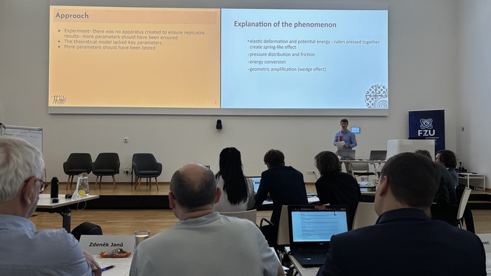 Máme za sebou Ústřední kolo Turnaje mladých fyziků – jedné z nejnáročnějších středoškolských soutěží. Tříčlenné týmy se utkávají ve fyzikálních soubojích (náročná argumentační debata o správnosti výsledků vlastního měření a sestavené teorie popisující daný, často velmi komplexní, jev) před odbornou porotou. Celosvětově mají týmy zadáno 17 otevřených úloh, a kvůli návaznosti soutěže na vyšší kola, komunikuje se v angličtině. Soutěž proběhla ve dnech 24.– 27. 3. 2025 na Fyzikálním ústavu AV ČR.