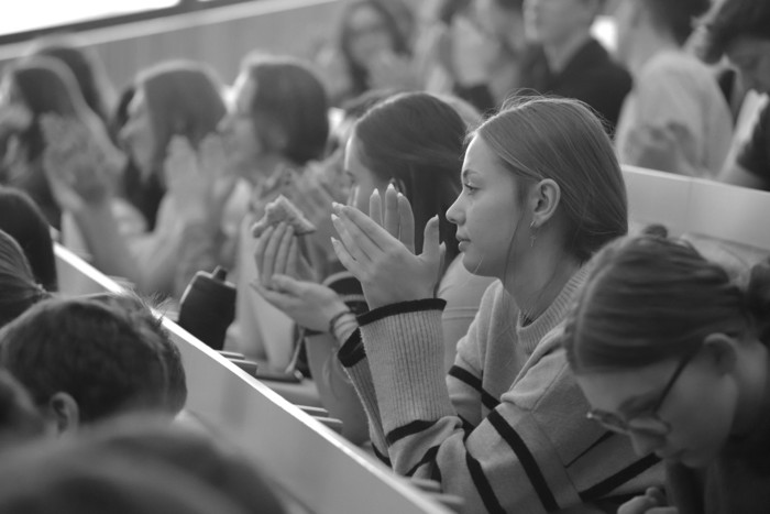 … až k jeho závěrečné výzvě studentům: správně se rozhodovat a žít plnohodnotný, naplněný život ve své sebeúctě.