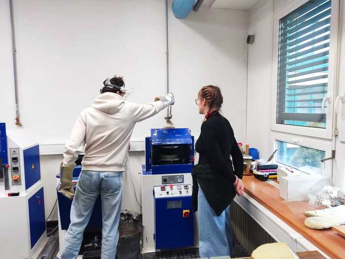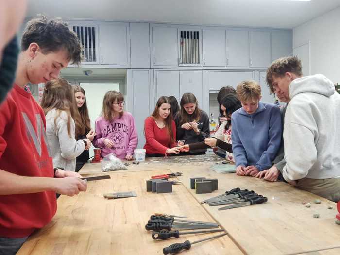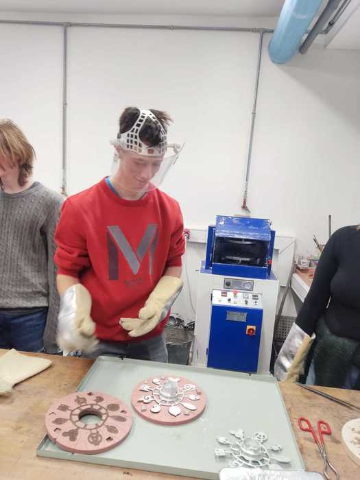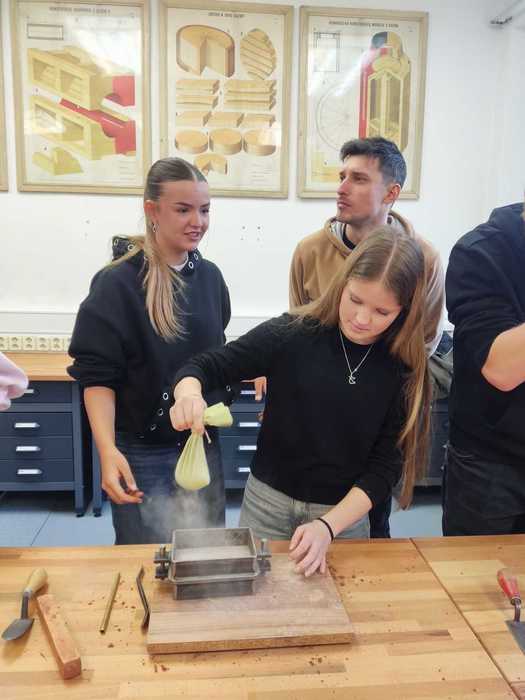 Ve středu 11.2. zavítali žáci 2. D na Vysokou školu báňskou v Ostravě-Porubě, konkrétně do prostor Fakulty materiálově technologické. Cílem exkurze bylo vyzkoušet si proces výroby kovových výrobků, od přípravy formy až po finální odlitek.