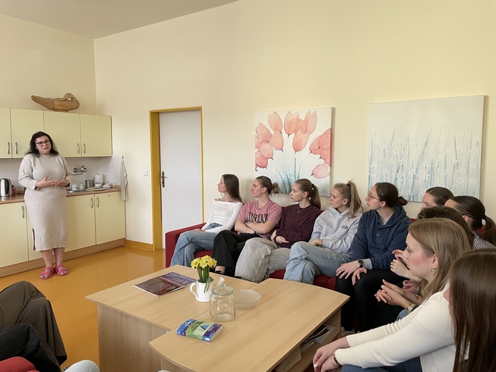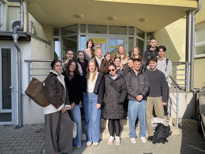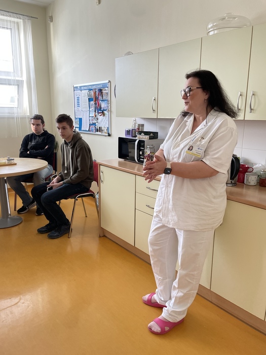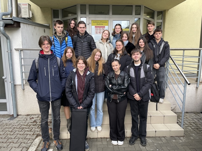 Na Ústavu soudního lékařství nás přivítal tým vedený MUDr. Petrem Handlosem, Ph.D., který se nám během celé exkurze ochotně věnoval. Studenti se dozvěděli mnoho zajímavých informací o fungování pracoviště. Překvapením pro mnohé bylo, že ústav zajišťuje soudnělékařský servis pro celý Moravskoslezský kraj. Hlavní náplní jeho práce je provádění zdravotních a soudních pitev a díky špičkově vybavené toxikologické laboratoři také komplexní toxikologický servis, včetně analýzy širokého spektra látek, mezi nimi i drog.