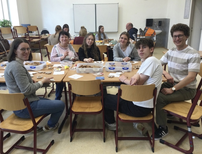 Sobotní dopoledne jsme strávili ve škole při kreativních dílnách s velikonoční tematikou. Studenti si pod odborným vedením vyzkoušeli zdobení perníčků a čokoládových beránků, malování velikonočních kraslic voskovou technikou i tradiční pletení pomlázek, které naši němečtí přátelé zpočátku přijali s rozpaky, protože se jedná o typicky český velikonoční zvyk a na první pohled vypadá velmi násilně. Zbytek víkendu studenti strávili při společných aktivitách a procházkou v okolí Hradce nad Moravicí.