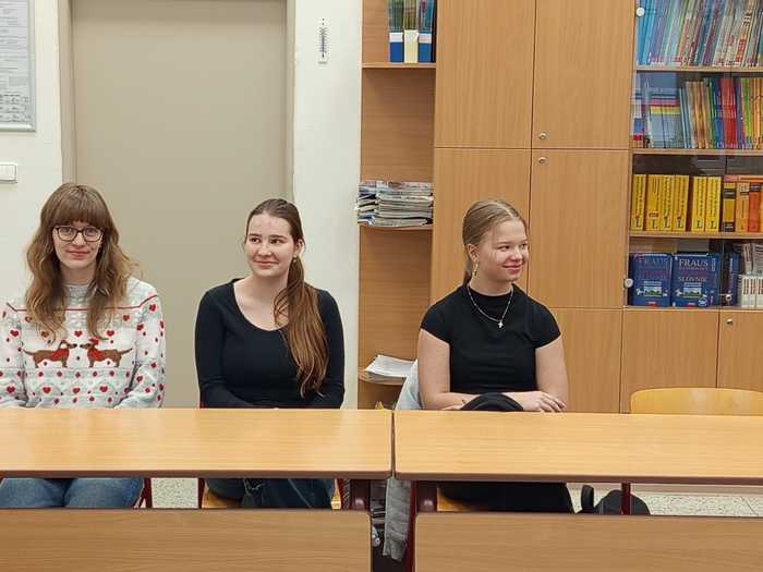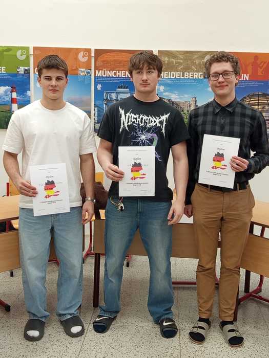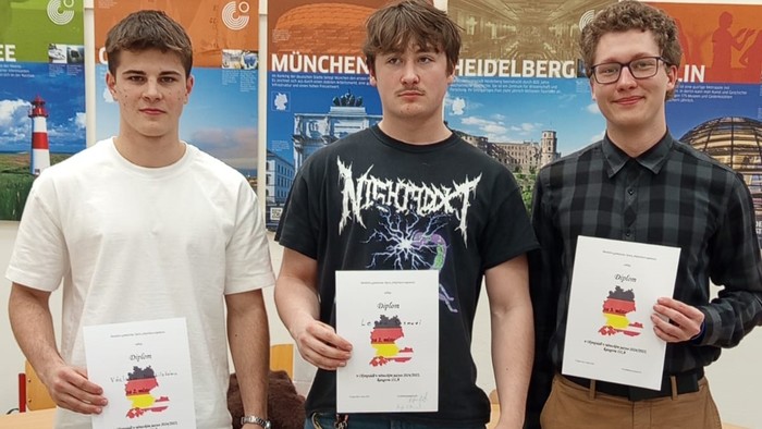 Také němčináři mají za sebou školní kolo Soutěže v německém jazyce. A jaké jsou výsledky? V kategorii III.A, v níž soutěží všichni středoškoláci kromě čtvrtého ročníku a 8.A, zvítězil Leon Sosna (2.B) a na děleném druhém místě skončili Václav Novobilský (7.A) a Jonáš Kokoř (2.B). Klukům gratulujeme a přejeme jim hodně štěstí v okresním kole.