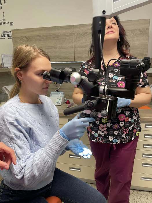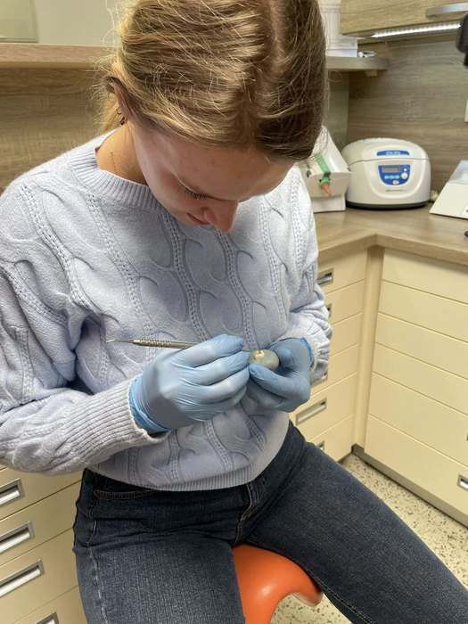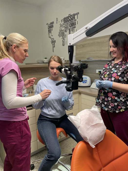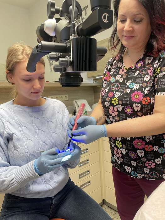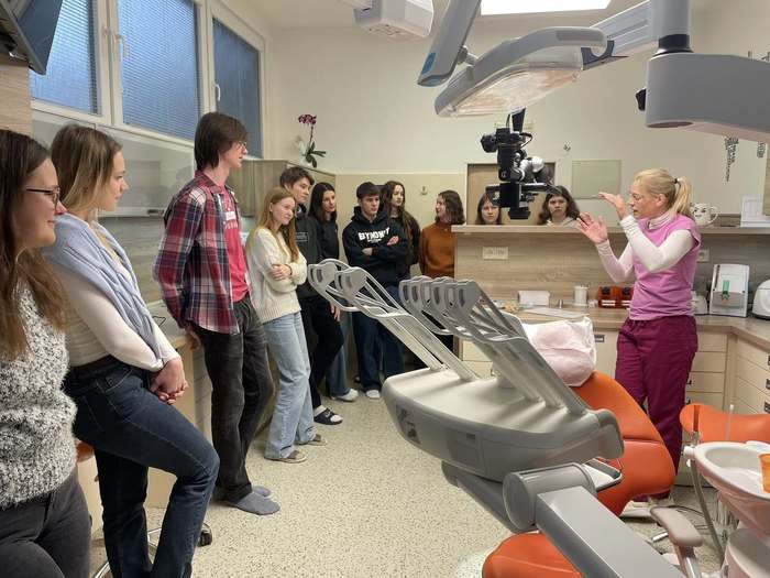 Dnes jsme proto v rámci výuky navštívili zubní ordinaci MUDr. Moniky Papeschové, která nám umožnila nahlédnout do prostředí moderní stomatologické praxe. Studenti měli jedinečnou příležitost seznámit se s chodem ordinace, používanými přístroji i s praktickými aspekty práce lékaře. Velkým přínosem byla také otevřená diskuse, během níž mohli klást dotazy „až na dřeň“ – nejen k samotné stomatologii, ale i ke studiu medicíny, profesní dráze lékaře či etickým otázkám spojeným s výkonem povolání.