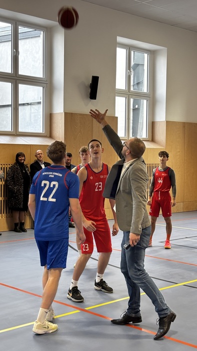 Symbolického otevření se ujali naši basketbalisté, kteří dvouminutovým zápasem zahájili provoz nové tělocvičny. Od druhého pololetí tak mohou žáci i jejich učitelé využívat moderní prostory, které přispějí nejen ke zkvalitnění výuky tělesné výchovy, ale také k radosti z pohybu.