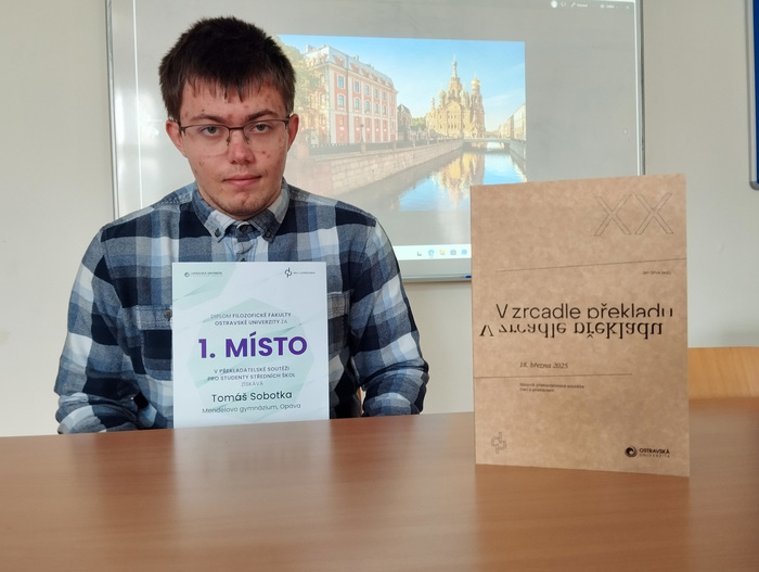 To nejlepší na závěr. 17. března byly vyhlášeny letošní výsledky soutěže Den s překladem, kterou organizuje Ostravská univerzita. My jsme opět ukázali, že máme skvělé studenty. 1. místo si svým překladem zajistil Tomáš Sobotka (4.C). Patří mu naše gratulace ke skvělému výsledku a poděkování za krásnou reprezentaci školy.