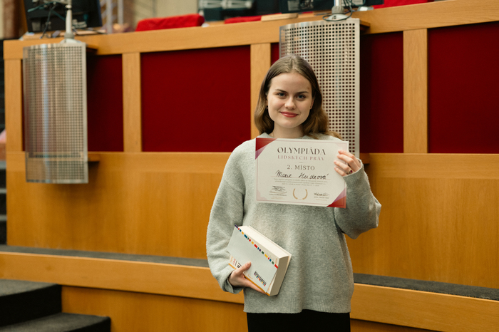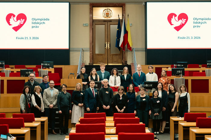 Dne 21. 3. 2026 probíhalo na Magistrátu hl. města Prahy celostátní finále Olympiády lidských práv České republiky, kde studenti z celé země soutěžili o postup do superfinále. Mezi 40 nejlepších účastníků se probojovala i Marie Heidrová ze třídy 8.A, která v úvodním online kole uspěla se svou esejí na téma vyvěšování vlajek na akademické půdě.