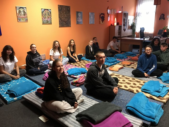 V rámci výuky jsme se také vydali do buddhistického centra, kde jsme měli možnost vyzkoušet si meditaci zaměřenou na zklidnění mysli. Buddhismus je pro většinu z nás kulturně i nábožensky vzdálenější tradice, o to však byl zážitek zajímavější a přínosnější.