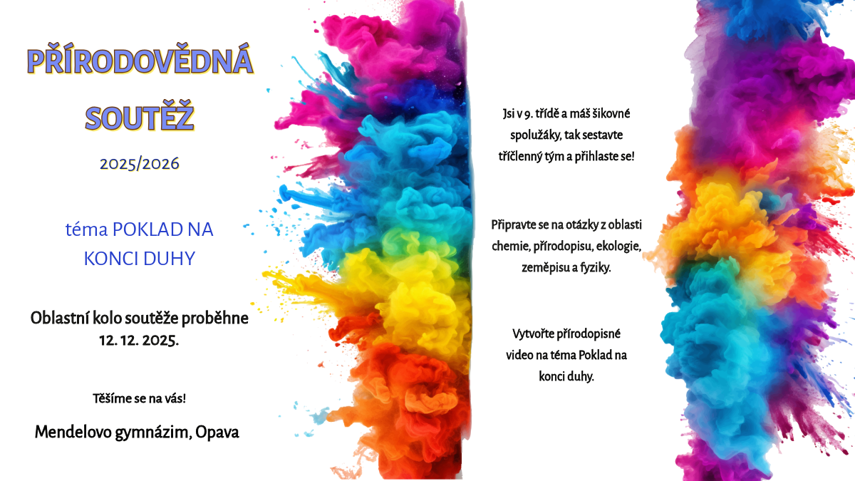 Přírodovědná soutěž je naší původní soutěží a má u nás dlouholetou tradici (od školního roku 2007/2008). Na organizaci a realizaci se podílejí jak pedagogové, tak i žáci našeho gymnázia. Letošní ročník proběhne opět na oblastní a poté i krajské úrovni. Jako dvojúrovňovou ji vedeme od školního roku 2021/2022. Oblastní kolo pro opavský okres a následující krajské kolo se uskuteční u nás na Mendelově gymnáziu. Výsledky soutěže jsou zohledňovány vysokým bodovým ohodnocením u přijímacího řízení na Mendelově gymnáziu. Počet bodů, který za soutěž můžete u PZ získat, je vždy uveden v Kritériích přijímacího řízení na MGO pro následující školní rok (naleznete v sekci Uchazeči - Přijímací řízení).