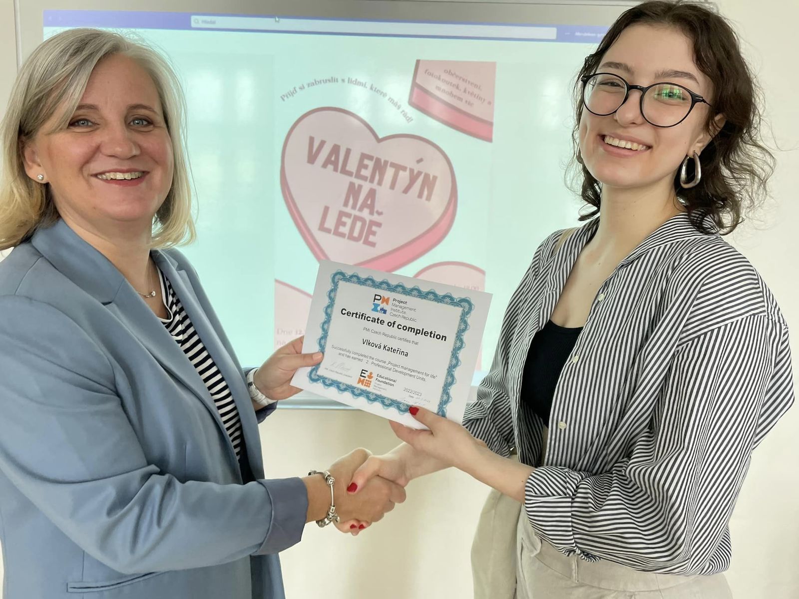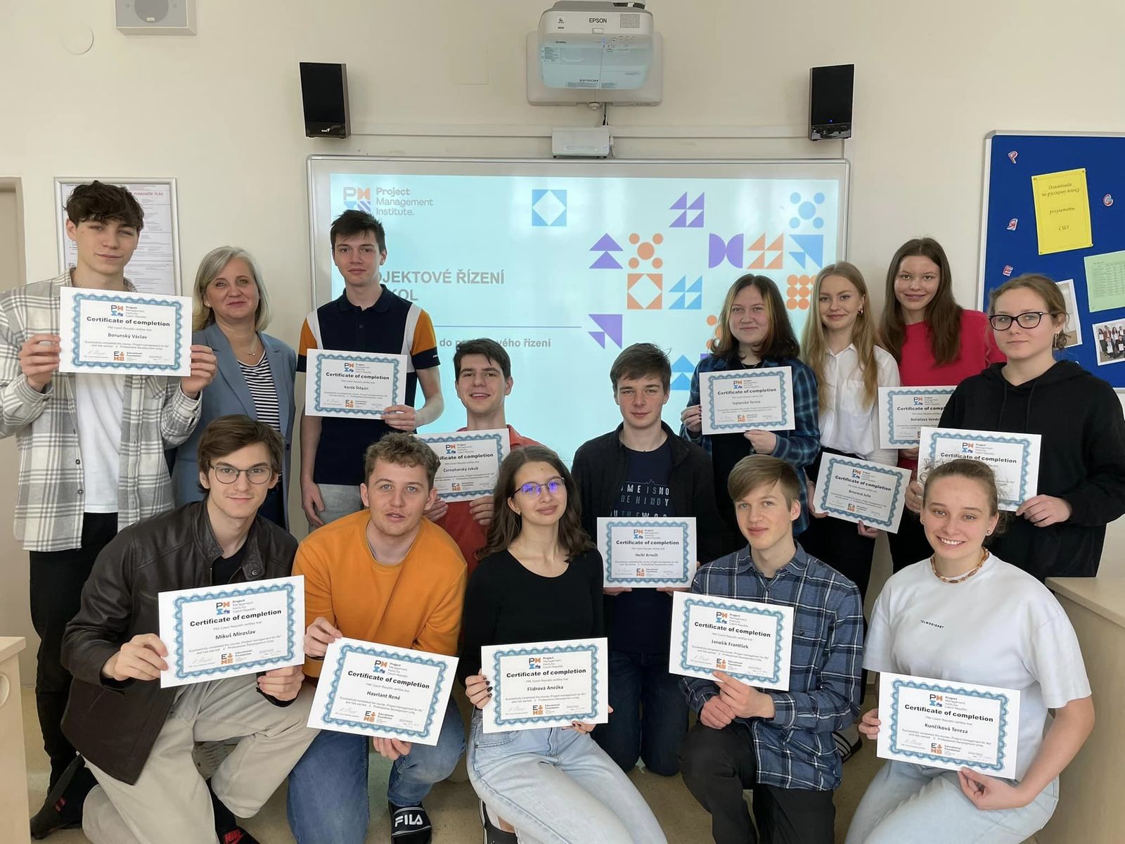 Naše škola ve spolupráci s Českou komorou PMI nabízí nepovinný předmět - Projektové řízení pro život. V rámci ekonomického semináře studenti absolvují celoroční kurz projektového řízení a po jeho dokončení získají certifikát největší světové neziskové organizace, která se zabývá projektovým řízením. Kromě teoretických znalostí je kurz výrazně zaměřen na praktické dovednosti a aplikování získaných znalostí, proto se při každém setkání věnujeme jak výkladu, tak konkrétnímu projektu, který si studenti vytvořili.